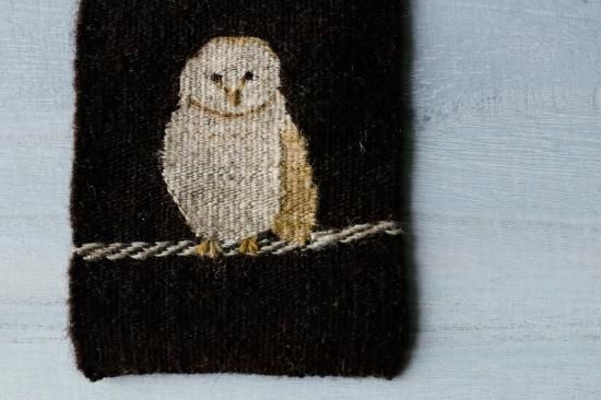 手紬ならではの 糸の太さや色合いが、メンフクロウの ふわふわの羽根の風合いに。